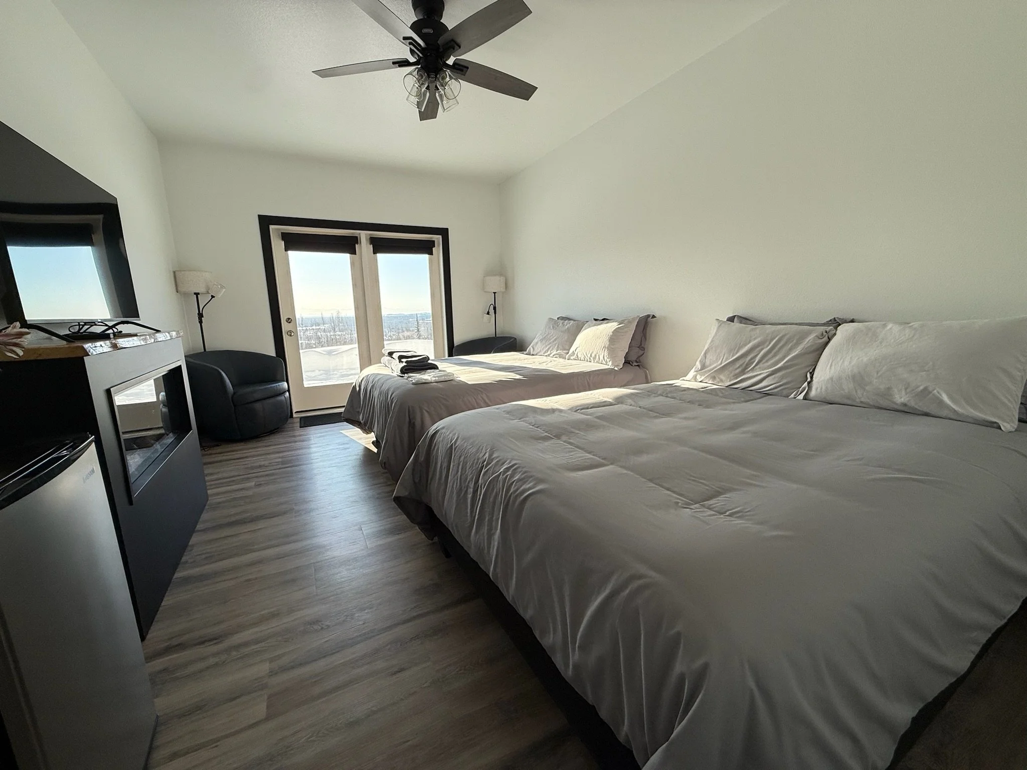 Choose from a collection of modern, comfortable rooms designed for travelers, couples, and adventurers exploring Fairbanks, Alaska. Whether you're here to chase the Aurora, experience the Midnight Sun, or simply unwind after a full day outside, our accommodations offer the perfect balance of convenience, warmth, and quiet retreat—making The Orion one of the best places to stay in Fairbanks.